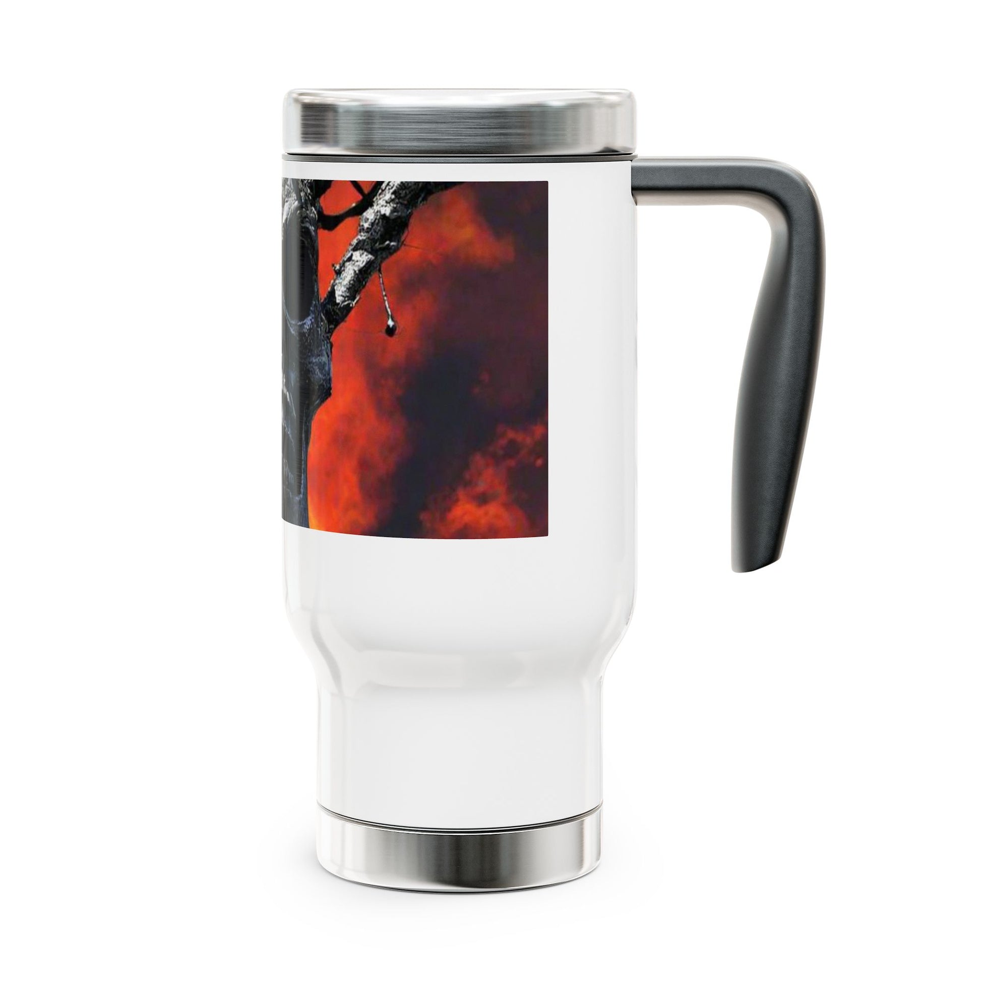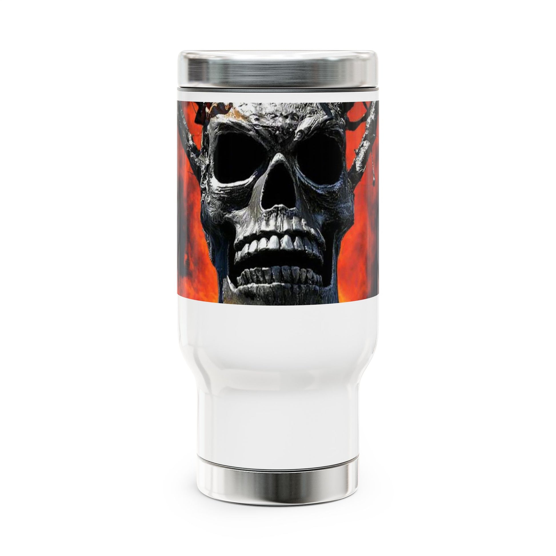 Skull Warrior Inferno Stare - Stainless Steel Travel Mug with Handle, 14oz